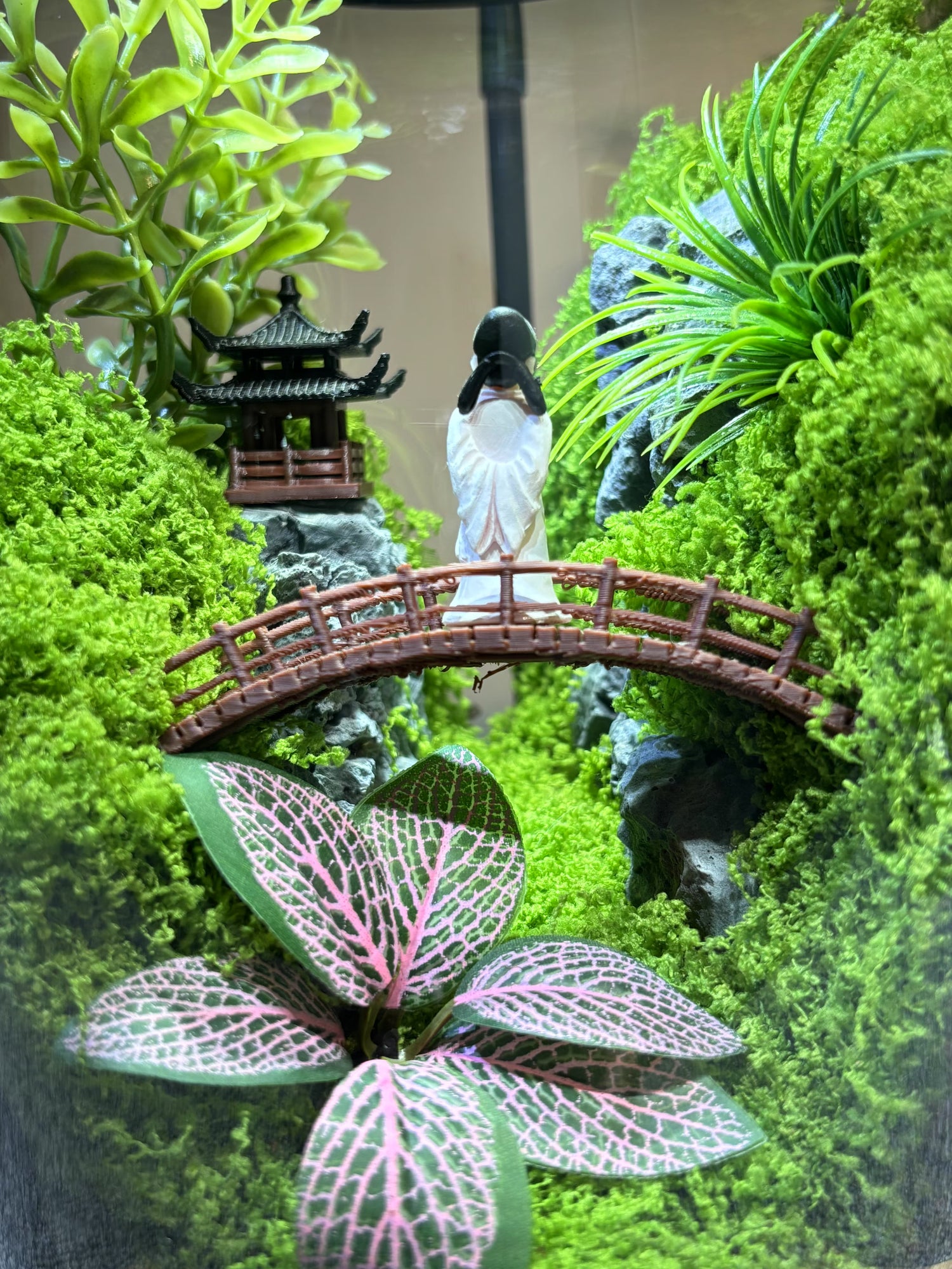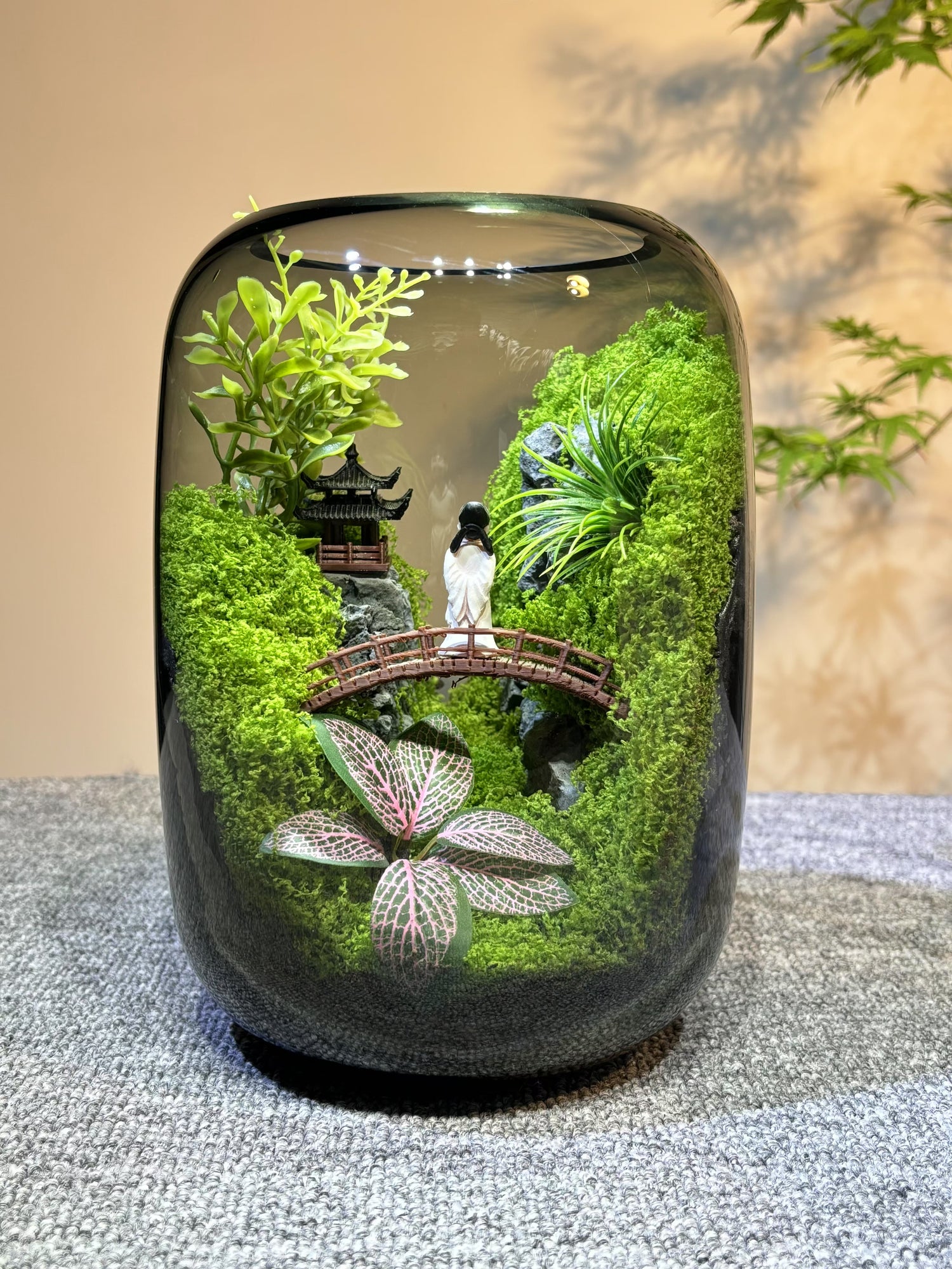 Transform any space with the Galleri™ Artificial Zen Paradise Terrarium. This elegant creation blends lifelike materials, realistic moss, and vibrant artificial greenery with miniature Japanese-inspired architecture. Everlasting and maintenance-free, our Zen Garden adds a touch of serenity and beauty to homes, offices, or serves as a thoughtful gift. Elevate any environment with the calming presence of the PlantPico™ Zen Garden Terrarium and bring the tranquility of ancient wisdom into your daily life.